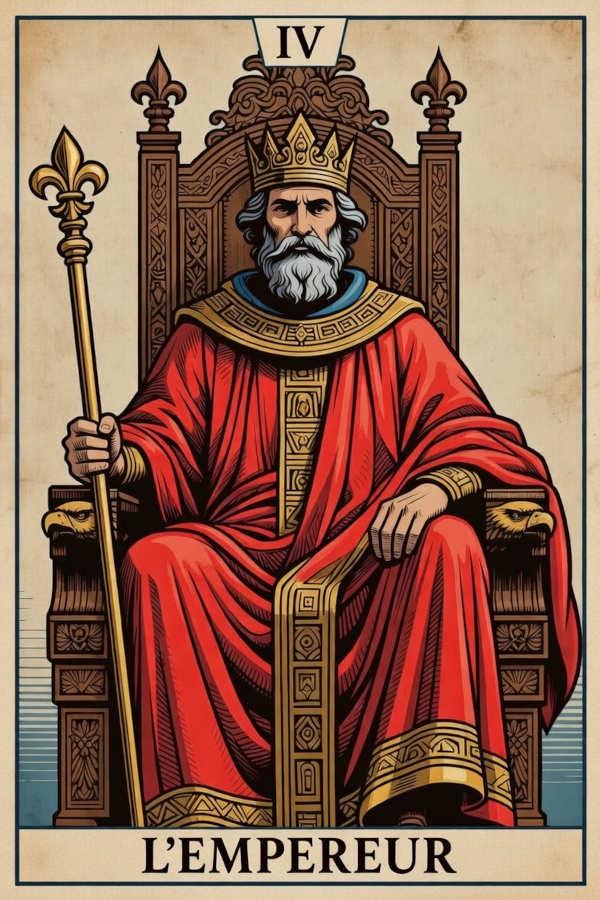 L’Empereur n’est pas une figure lointaine à craindre, mais une énergie structurante à incarner. Pour travailler concrètement avec son enseignement, commencez par une méditation simple : visualisez-vous « vous asseyant sur votre trône intérieur ». Fermez les yeux, ancrez votre posture, et ressentez la stabilité, la clarté et la légitime autorité qui émanent de votre centre. Cette pratique cultive la confiance en votre propre jugement. Quand cette carte apparaît dans un tirage, posez-vous des questions ciblées comme : « Dans quel domaine de ma vie ai-je besoin d’instaurer plus d’ordre et de structure ? », « Mon autorité (envers moi-même ou les autres) est-elle bienveillante et juste, ou rigide et tyrannique ? » ou « Quels sont les fondations solides sur lesquelles je peux bâtir ? ». Pour les débutants, ne la redoutez pas : elle n’annonce pas un dictateur, mais vous invite à prendre vos responsabilités avec maturité. Elle peut symboliser une personne influente dans votre vie (un père, un mentor, un dirigeant) dont il faut observer les qualités de leadership ou, à l’inverse, les excès de contrôle. Plus profondément, elle représente surtout un état d’esprit à adopter : celui de l’architecte de sa propre vie, qui établit des limites saines, prend des décisions réfléchies et agit avec intégrité pour manifester ses projets dans le monde concret.