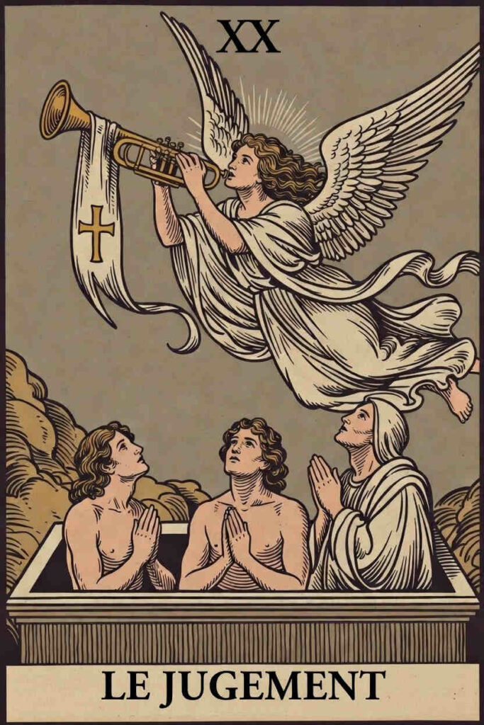 Conseil du Jour (si cette carte est tirée) : Le message est clair et urgent : écoutez l’appel. Qu’il se manifeste par une intuition tenace, une prise de conscience soudaine ou une opportunité extérieure qui frappe à votre porte, ne l’ignorez pas. Ce jour vous invite à faire un bilan honnête de votre parcours, sans complaisance ni faux-semblants. C’est le moment de pardonner ce qui doit l’être, y compris et surtout vos propres erreurs passées. Saisissez cette chance d’oser renaître à une nouvelle façon d’être, alignée avec votre vérité la plus profonde. Ne craignez pas ce jugement ; il n’est pas une condamnation, mais l’écho libérateur de votre propre conscience vous invitant à vous mettre debout et à vivre pleinement.